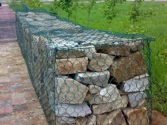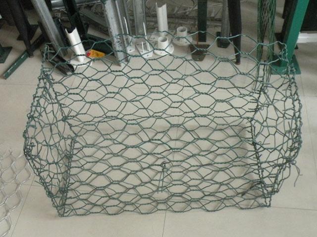 覆塑石籠網(wǎng)是使用機(jī)器將金屬線材單向搓捻兩周編織的六角形網(wǎng)(六角網(wǎng))制成的網(wǎng)箱,厚度在0.15-0.5m(含0.5m),又稱石籠和護(hù)墊,石籠網(wǎng)墊由隔板分成若干單元格,為了加強(qiáng)石籠網(wǎng)墊結(jié)構(gòu)的強(qiáng)度,所有的面板邊端均采用直徑更大的鋼絲。