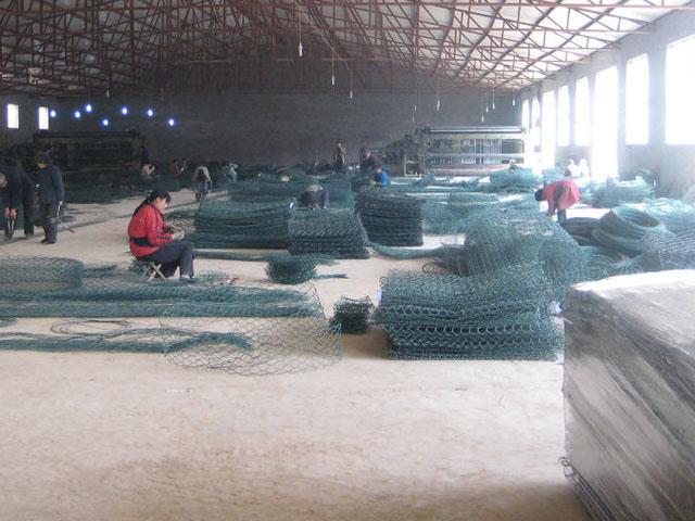 覆塑石籠網(wǎng)是使用機(jī)器將金屬線材單向搓捻兩周編織的六角形網(wǎng)(六角網(wǎng))制成的網(wǎng)箱,厚度在0.15-0.5m(含0.5m),又稱石籠和護(hù)墊,石籠網(wǎng)墊由隔板分成若干單元格,為了加強(qiáng)石籠網(wǎng)墊結(jié)構(gòu)的強(qiáng)度,所有的面板邊端均采用直徑更大的鋼絲。